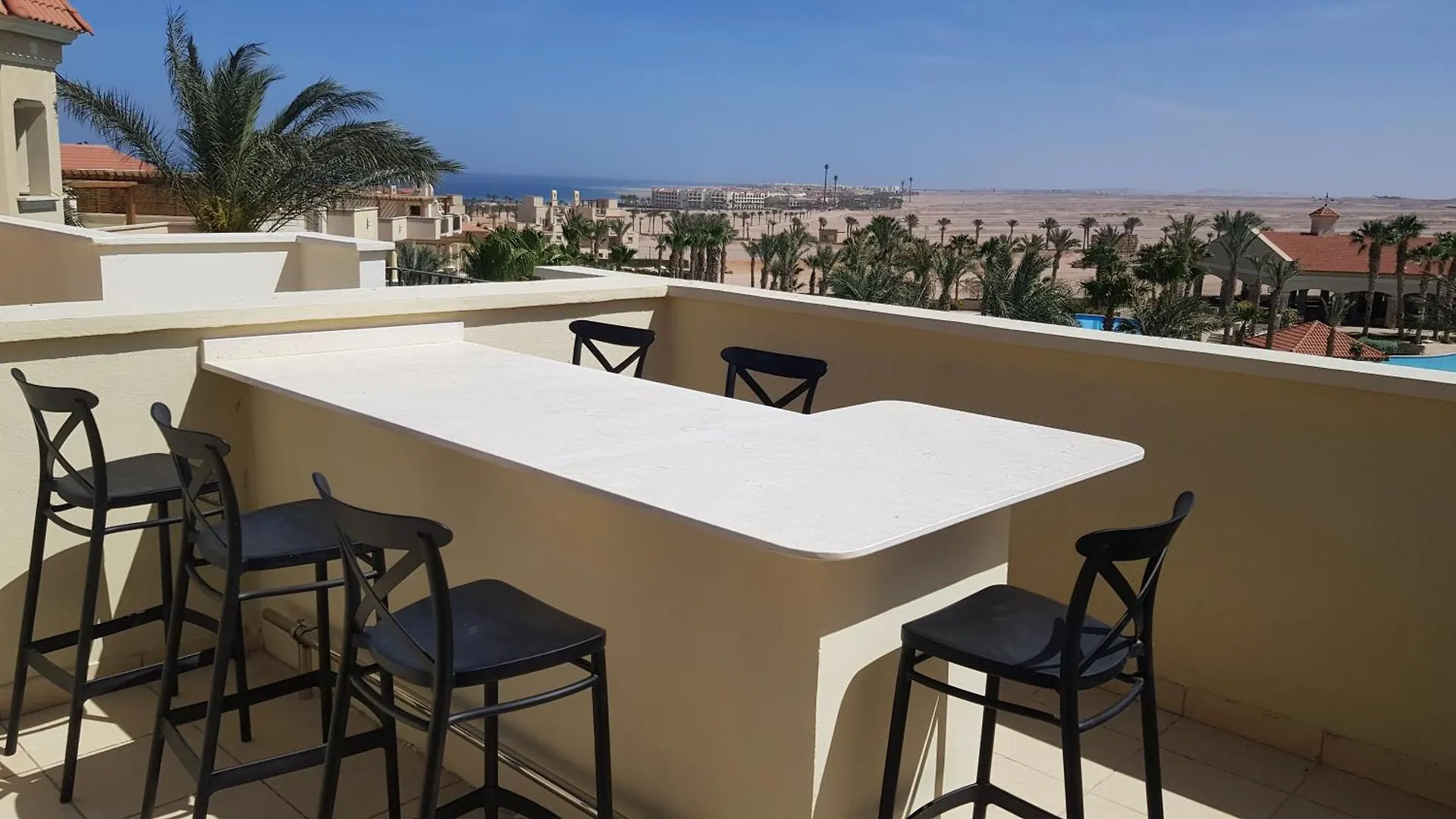 Sahl Hasheesh Deluxe Penthouse Veranda с балконом, гардеробной и зоной отдыха включают в себя такие удобства, как диван и письменный стол, а также система климат-контроля. Для большего удобства гостей в апартаментах есть телевидение, телевизор с плоским экраном и спутниковыми каналами. Гости могут разместиться в 2 спальнях. Апартаменты порадуют 2 ванными комнатами с биде, отдельным туалетом и душем. Кроме того, в ванной комнате доступен фен и полотенца.
